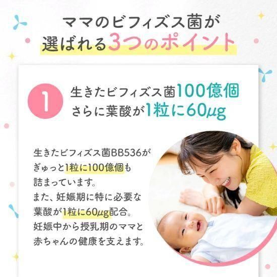 ママのビフィズス菌は、生きたビフィズス菌BB536を100億個と葉酸60μgを