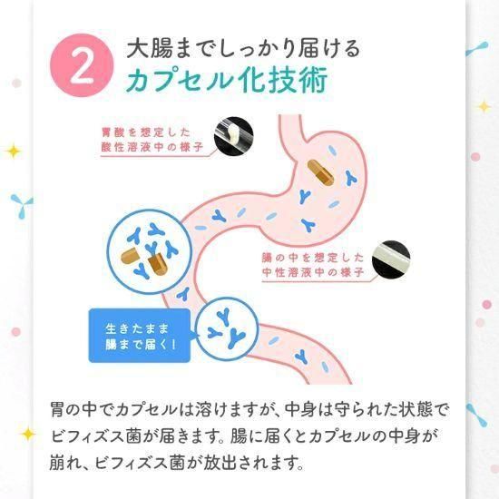 ビフィズス菌末(澱粉、ビフィズス菌乾燥原末)(国内製造)、乳蛋白質消化物、澱粉/HPMC、アルギン酸Na、ステアリン酸Ca、カラメル色素、炭酸Ca、リン酸Ca、葉酸、(一部に乳成分を含む)